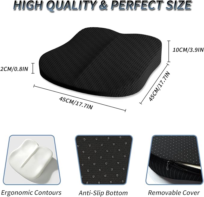 - Versatile and Accommodating: This butt cushion fits seamlessly on car seats, office chairs, gaming chairs, and wheelchairs, ensuring comfort wherever you go. Upgrade your seating experience and say goodbye to discomfort with the UVCMDUI Memory Foam Seat Cushion. It’s more than just a cushion—it’s a game-changer for enhancing your everyday living.