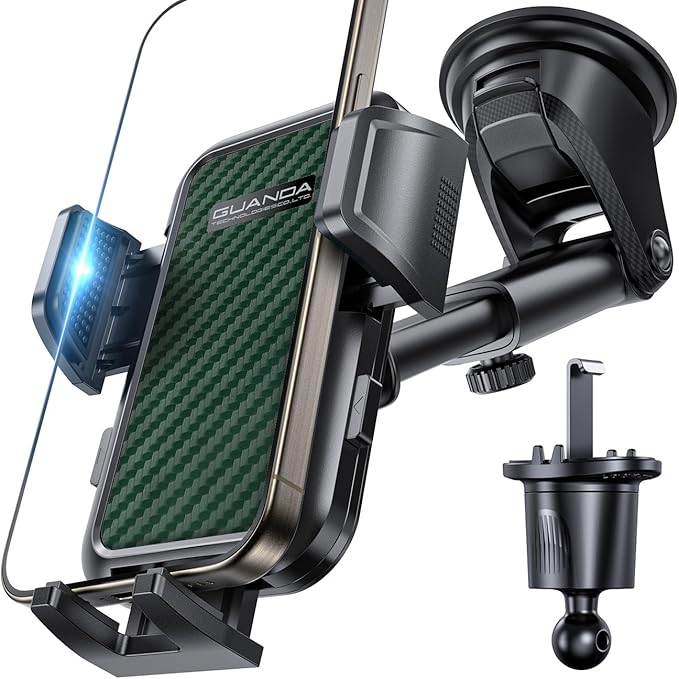 - 【Wide Compatibility】 Guanda car phone holder mount has been verified by 20,000+users around the world and is suitable for 99.99% mobile phone models. The suction cup phone mount has the largest arm (1.35 inches) on the market, making it absolutely suitable for your big mobile phone and thick case, such as Otter box/Pop socket or even wallet case.