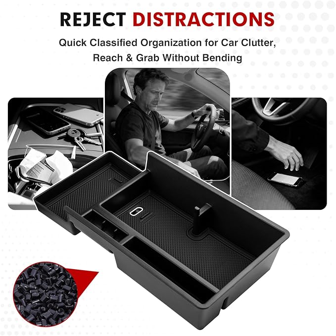 - 【Match Perfectly】Tailor-made according to the original armrest box. The dimensions and curves perfectly align with the interior, ensuring the armrest tray inserted into the center console remains firm and stable. So it won't slide or make annoying noises when accelerating, decelerating, or stopping.