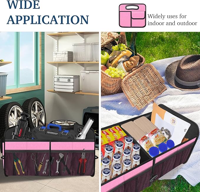 Femuar Car Trunk Organizer, Car Storage Organizer with Large Capacity Waterproof Collapsible Trunk Organizer for Car Suv/Jeep/Sedan (Pink, Standard)