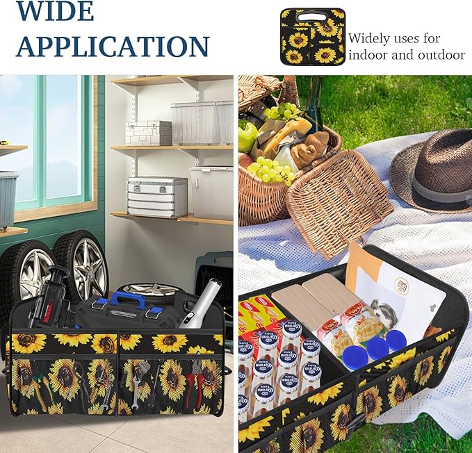 Femuar Car Trunk Organizer, Car Storage Organizer with Large Capacity Waterproof Collapsible Trunk Organizer for Car Suv/Jeep/Sedan (Sunflower, Standard)