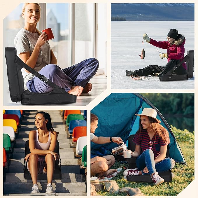 Nice C Heated Seat Cushion, Heated Stadium Seat, Heated Bleacher Seat, Stadium Seats for Bleacher, Massage Stadium Seat Cushion with Back Support, with Power Bank, Carry Handle&Compartment (1 Pack)