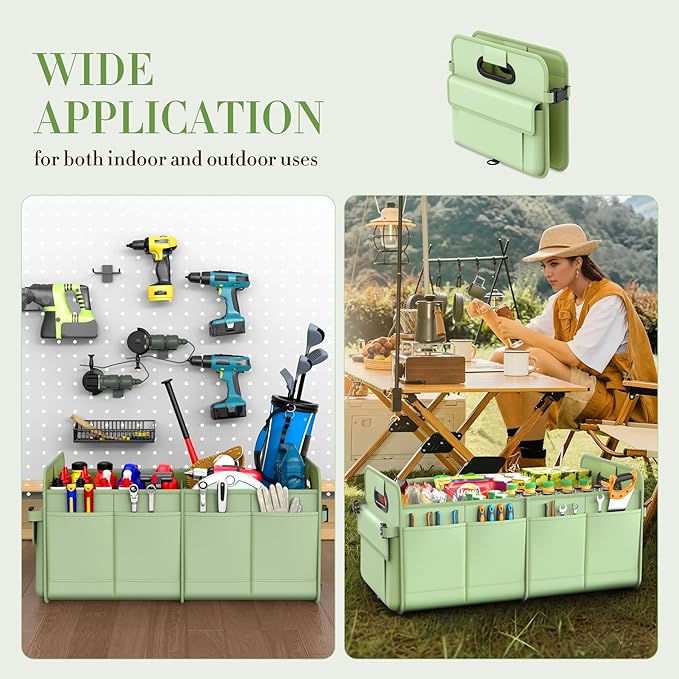 Trunk Organizer For Suv & Sedan,Car Organizers and Storage, Waterproof Collapsible & Adjustable Straps,75L Sturdy Car Organization for Car Accessories, Tools,Sundries,2-3Compartment(Green