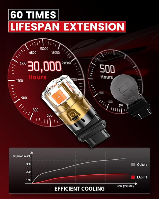 LASFIT 3157 LED Bulb Turn Signal Lights Amber Yellow, Upgrade 500% Bright 3156 3157a 3057 4157 4057 LED, Replacement Bulbs with Projector Rear Blinker Lights (Need Resistor), 2pcs