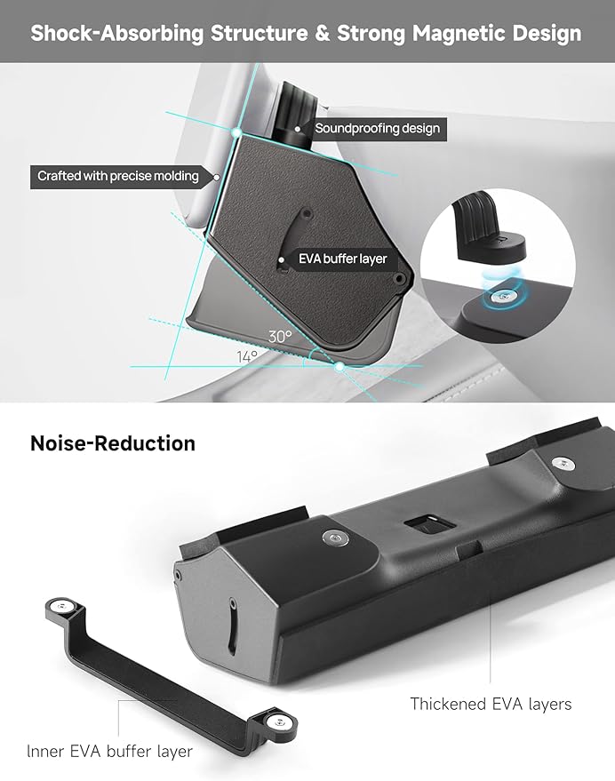 - Shock-Absorbing Structure & Strong Magnetic Design, N52 ultra-strong magnetic fastening design. One step effortless installation with built-in magnet. All moving parts have insulation to ensure a muted, low-profile opening and closing sound