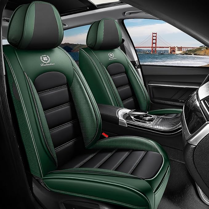 2 Seat Covers Fit for Acura ZDX 2024, Waterproof Premium Leather Automotive Accessories Seat Protectors Seat Cushions Wear-Resistant Car Seat Covers(Black&Green,Front Only)