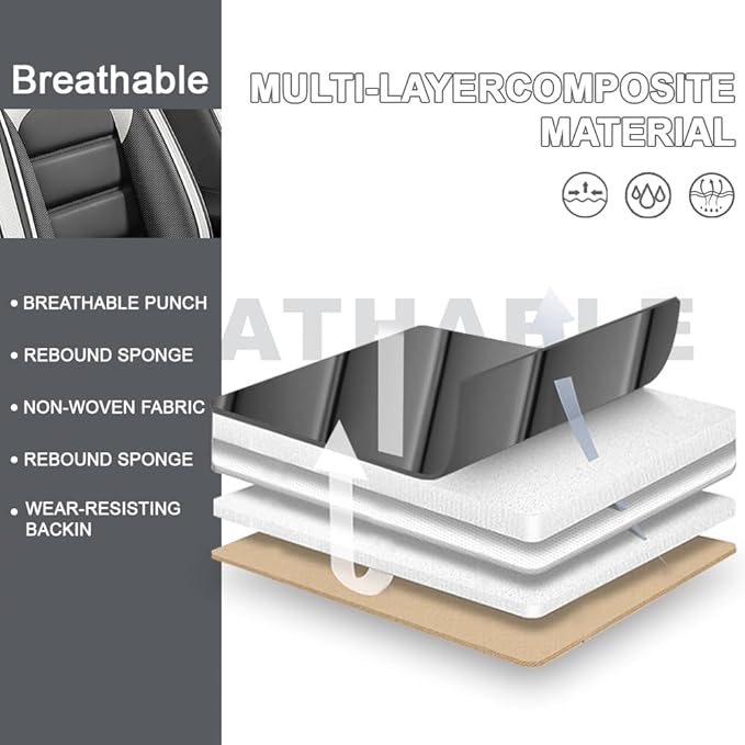 - 🚗HIGH QUALITY LEATHER🎁: Each seat cover is made of multi-layer material that is soft and durable. The surface is made of high quality leather, soft and waterproof. The middle part is filled with high resilience foam to enhance the sitting experience. The bottom layer is made of non-slip fabric to hold the cushion firmly in place.