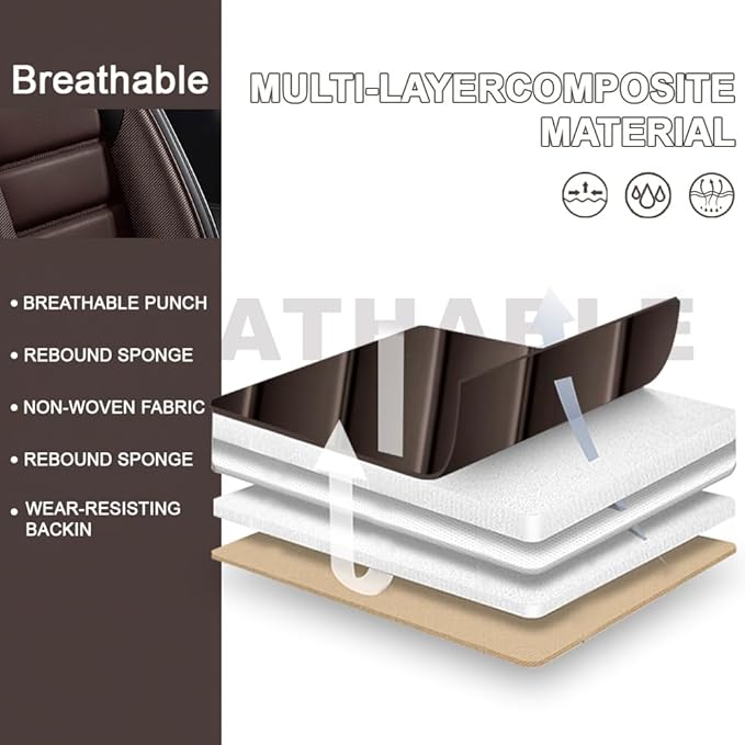 - 🚗HIGH QUALITY LEATHER🎁: Each seat cover is made of multi-layer material that is soft and durable. The surface is made of high quality leather, soft and waterproof. The middle part is filled with high resilience foam to enhance the sitting experience. The bottom layer is made of non-slip fabric to hold the cushion firmly in place.