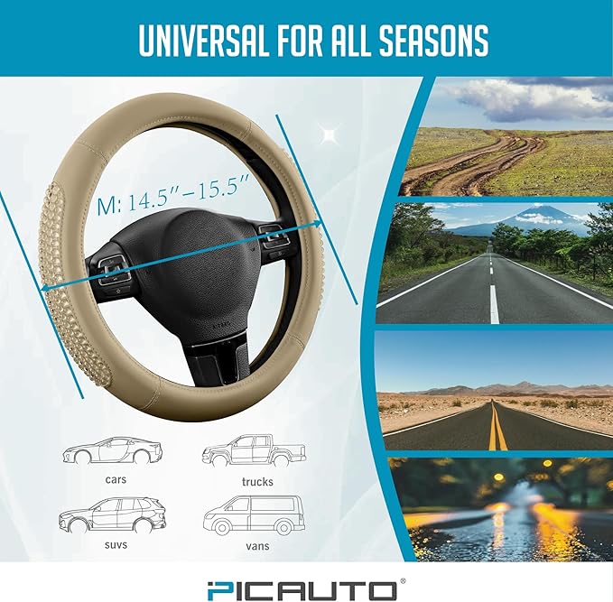 - UNIVERSAL FIT - Look for covers designed to fit a wide range of steering wheel sizes, typically between 14.5" and 15.5". This versatility makes installation straightforward and ensures that it will fit securely on most vehicles without hassle.