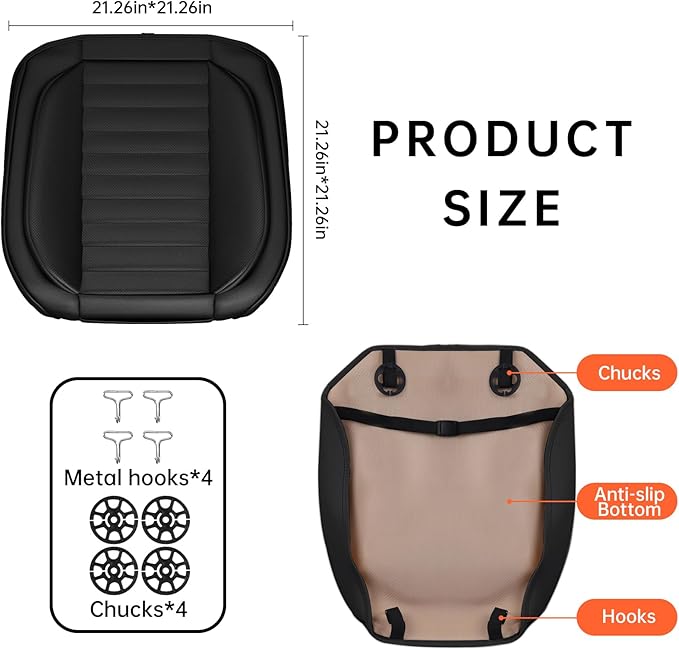 - 【EASY TO INSTALLATION】 Car seat cover is designed to be install easily. Front seat covers can be secured by chucks and hooks, details as video or user manuel.