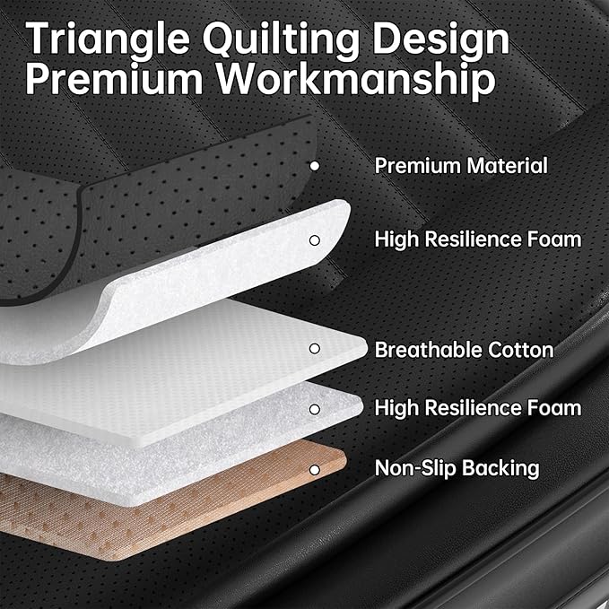 - 【LUXURY LEATHER】 SCDOOCA bottom seat covers are crafted of porous luxury leather, the covers are smooth, breathable and gentle to touch, which does not affect the ventilation and heating of the car. Filled with high-resilient density foam padding, they can boost the comfort level in the cabin of any vehicle.