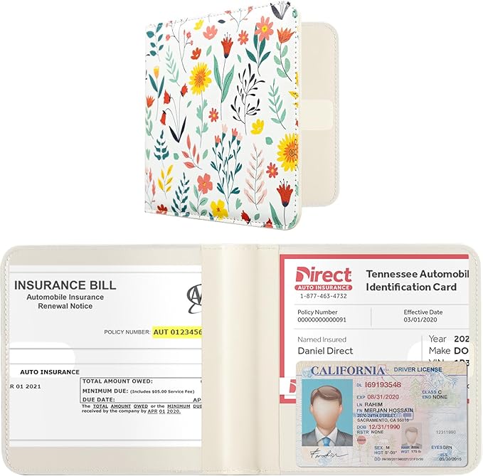 CoBak Car Registration and Insurance Holder - Small and Lightweight Vehicle Glove Box Car Organizer, Auto Truck Comparment Accessories Case for Essential Document, Driver License (Joyful Flowers)
