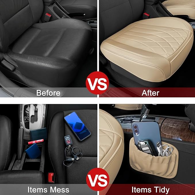 - PU Leather Soft & Durable: Our bottom seat covers for cars are made of soft PU leather, providing soft and durable protection for your car interior for long-term use. A built-in layer of elastic sponge provides maximum comfort for your hips during your driving. When the bottom car seat covers get dirty, just wipe them gently with a dry towel.