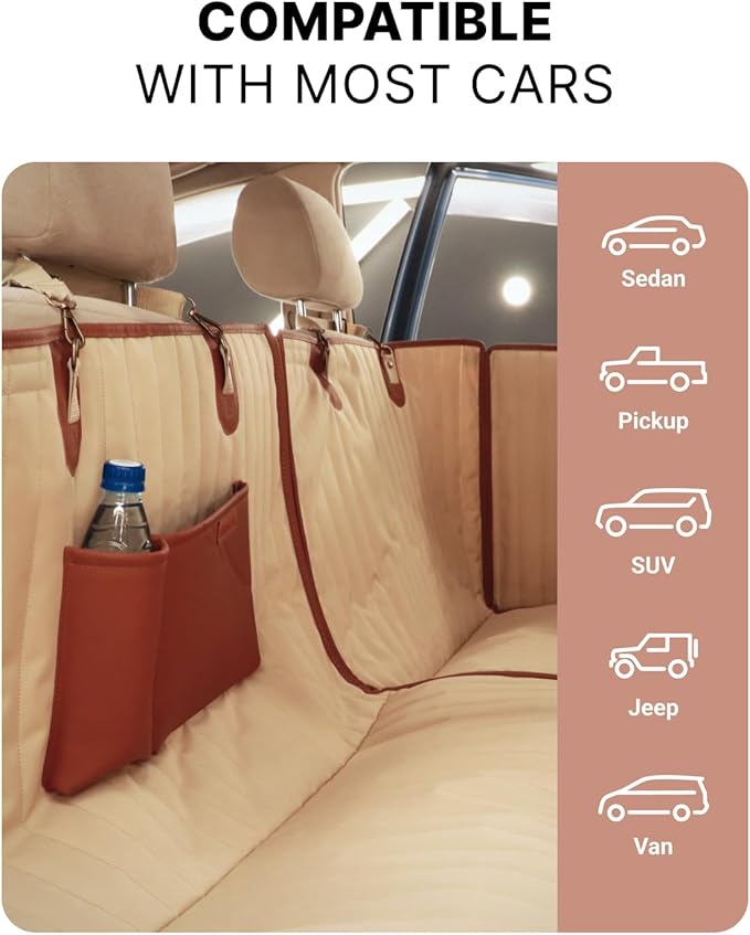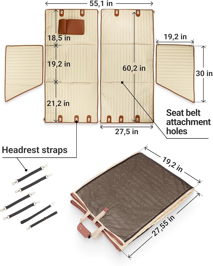 Owleys Back Seat Extender for Dogs Premium Dog Hammock for Car | Back Seat Pet Cover for Dogs | Dog Covers for Cars Back Seat (Begie for Summer)