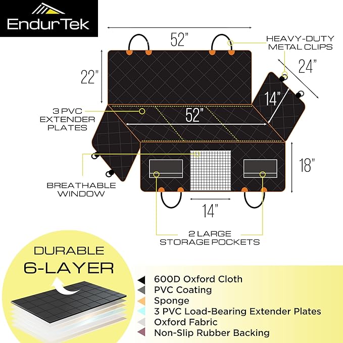 - VERSATILE It's not just a back seat extender for dogs. You can also use this hard bottom doggy car seat cover as a cargo liner or to protect truck beds from sharp nails. Always travel with a car mattress for your pup!