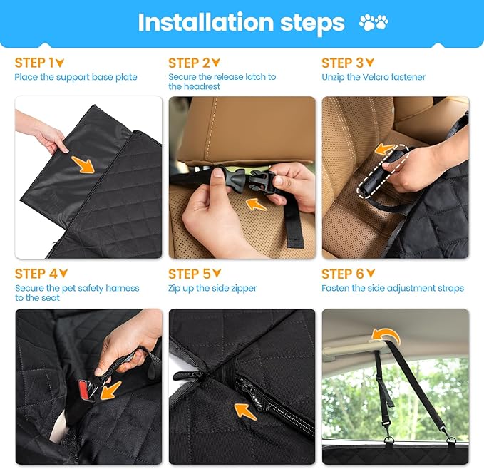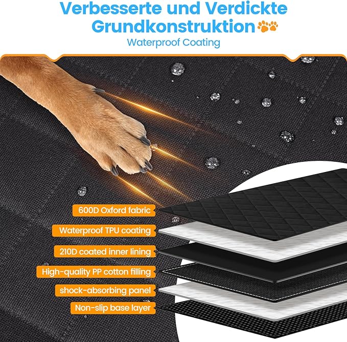 - Upgraded Material Ultimate Comfort : The back seat pet cover is made of 6 layers of high-quality material, advanced heat-press technology, more waterproof and scratch-resistant, 600D Oxford cloth + 100g comfortable cotton + 2 layers of PVC waterproof film + lined with 210D coating + fleece lining and other high-quality materials, the bottom of the anti-slip particles to make the dog seat cover more secure, PP cotton layer to increase the softness of the dog seat cover