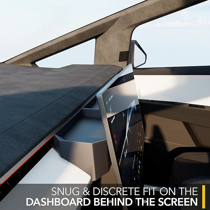 - π Perfect Dashboard Fit: Expertly designed to fit behind the Cybertruck's screen, this insert requires no glue or adhesive, seamlessly integrating with your vehicle's dashboard layout. It's an essential addition for a clutter-free and organized cabin.