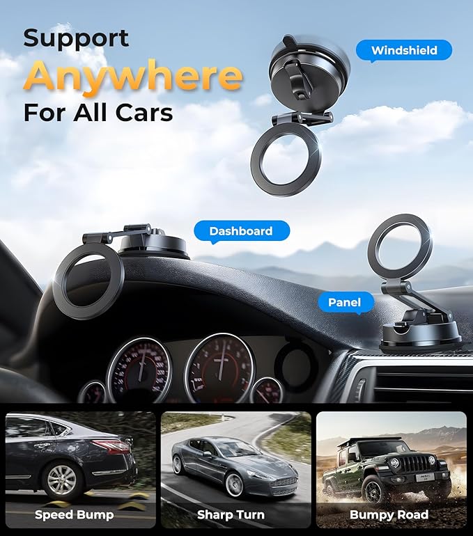- 【🔒 VacuLock Ultra-Strong Suction|Ditch Sticky Residue | Mount Anywhere】 Features revolutionary VacuLock Pro Vacuum Suction Technology with a manual twist-lock for secondary pressure, simply rinse with water to restore stickiness with no adhesive residue. Say goodbye to 3M damage and hard-to-remove stains on your dashboard. Truly easy to install, remove in a second, and reuse endlessly – ideal car accessories for rental cars, switching between vehicles, or even using at the gym or on bathroom mirrors. The perfect solution for Tesla owners, rental car users, and drivers who frequently change mounting positions- perfect for Hertz/Avis rentals travels.