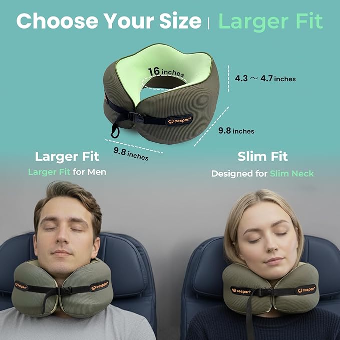 Cesperi® Travel Neck Pillow for Airplanes, Ergonomic Design, Airplane Neck Pillow with Memory Foam, Travel Essentials for Flights, Car Rides, and Home Rest, Large (Avocado Green)