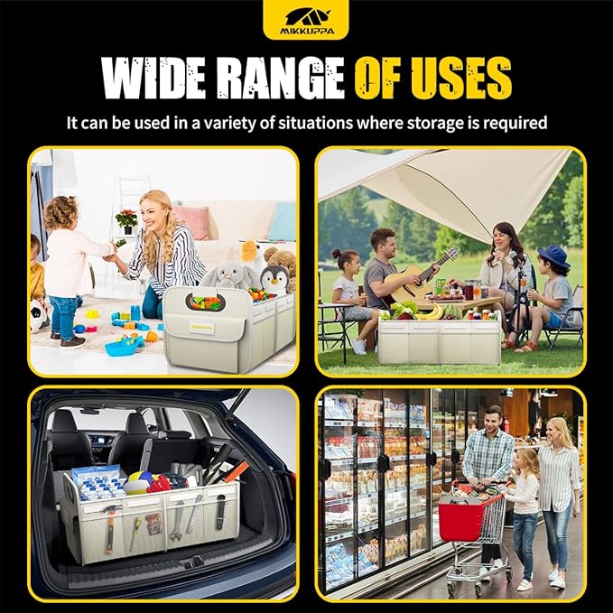 - [MULTI-FUNCTION USE]: You can use the trunk organizer for car in different scenarios, bringing more convenience to your life. It can be used to store your clothes or daily necessities or it can play a key role in your picnic or camping, and more