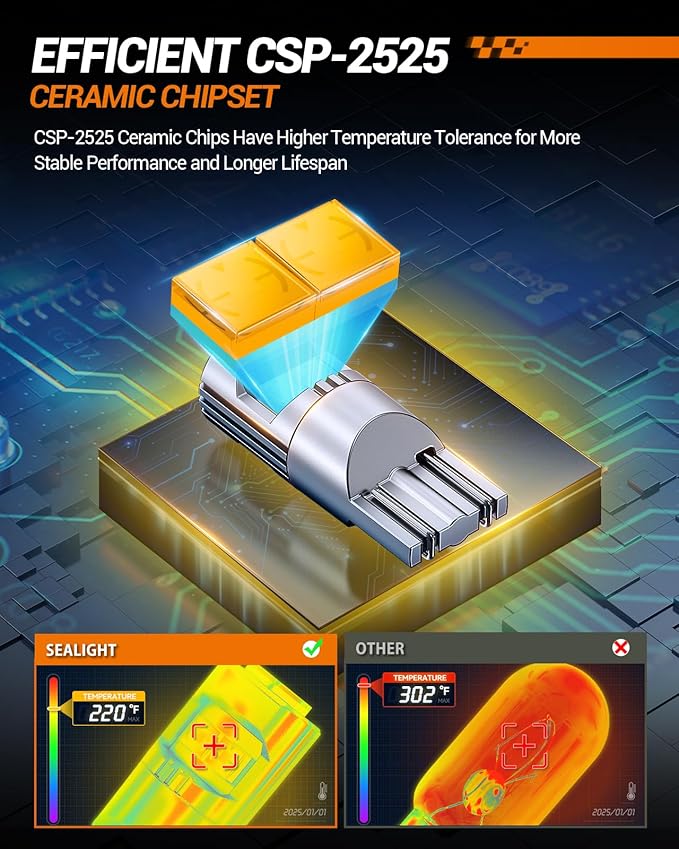 SEALIGHT 194 LED LightBulb 6000K,Amber,Pack of 4