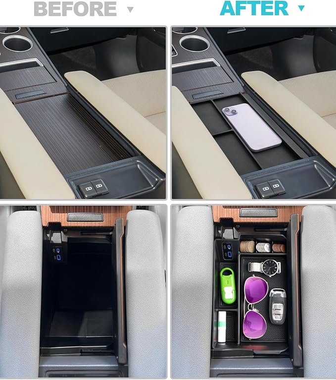 - Keep Items Trapped on the Top of Armrest: The factory armrest lacks protection, making it easy for items to fall into the gap when opened. After installing this, it prevents items like cellphone, sunglasses, coins, credit card from falling into the gap, saving the hassle and cost of removing the armrest to retrieve items