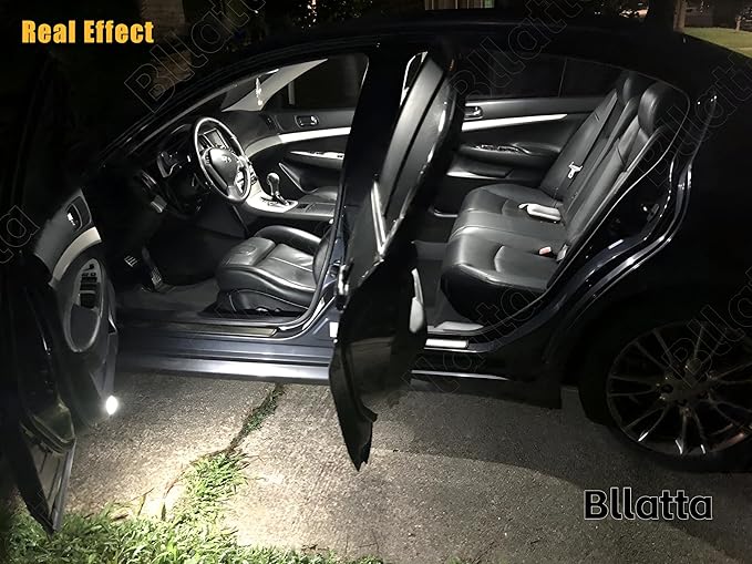 - Package Components: Bllatta Dome Light, Bllatta Vanity Mirror Lights, Bllatta Glove Box Lights, BllattaDoor Lights,Bllatta Trunk Light, Bllatta License Plate Light. (Total 10 LED bulbs, 1 installation tool and 1 placement chart.)(Please note the front map lights in the Q50 are stock LED from factory, they are soldered to a chip and board and cannot be replaced.)