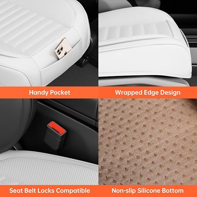 - 【LUXURY LEATHER】 SCDOOCA bottom seat covers are crafted of porous luxury leather, the covers are smooth, breathable and gentle to touch, which does not affect the ventilation and heating of the car. Filled with high-resilient density foam padding, they can boost the comfort level in the cabin of any vehicle.