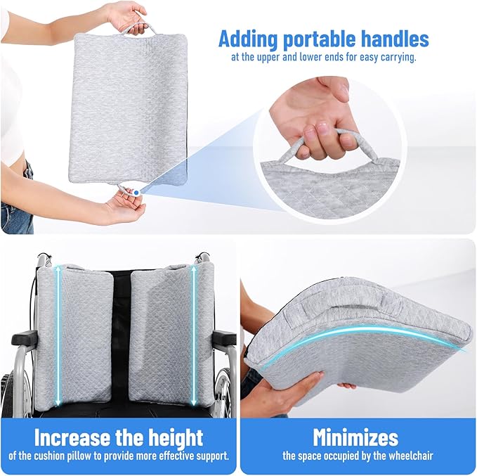 - In addition to being used as a lateral cushion for a wheelchair, it can also be used as a wedge pillow for sleeping, supporting the back, hands, knees, ankles, and other body parts to help improve sleeping posture, relieve local discomfort.