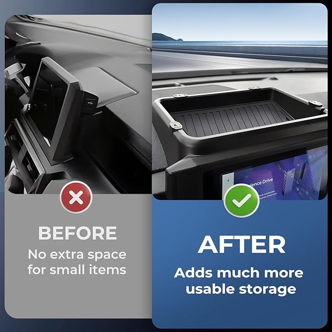 - MAXIMIZE DASHBOARD UTILITY - The dash organizer for Toyota Tacoma 2024-2026 & 4Runner 2025-2026 expand the storage space of the dashboard behind the screen and provide quick access to your daily items. It fits snugly behind your dashboard screen, integrating perfectly with other accessories for a secure and hassle-free upgrade to your vehicle.