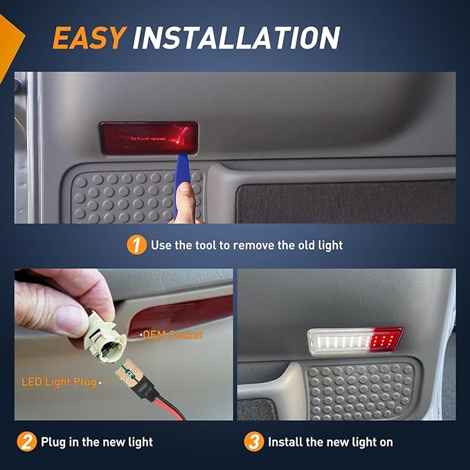 - Build to last & Super Bright: Made of premium ABS housing and lens, won't faded at long-time exposure; 6 times brighter than original incandescent bulb housing light. Built-in high power SMD LED chips to maximize illumination on the interior side doors