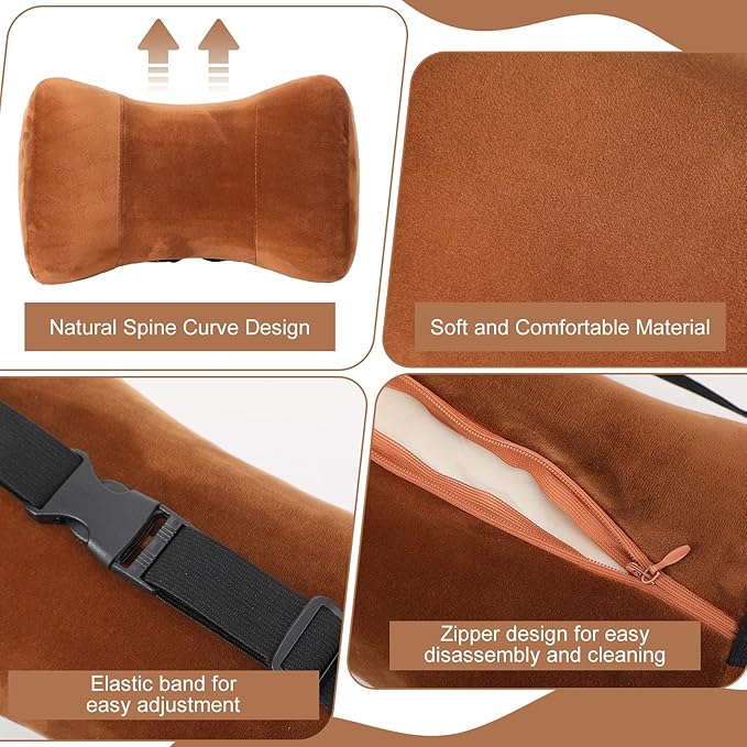 Youyole Car Neck Pillow for Driving Seat 11.8 x 7.87 x 4.7 Inches Office & Gaming Chair Neck Support Pillow Memory Foam with Strap Velvet Cover for Car Driving and Desk Use(Coffee)