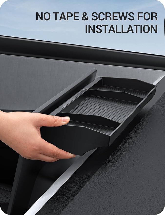 - Minimize Movement & Noise: The behind-screen storage tray utilizes EVA cushioning foam in contact areas to prevent scratches, provide cushioning, and significantly reduce friction during movement to protect original components. Its non-slip textured bottom also reduces noise when items are being moved, ensuring a quieter driving experience