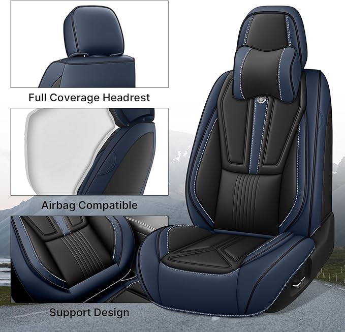 - 【SAFETY-CONSCIOUS DESIGN】:Our front seat covers are carefully designed to be compatible with airbags, and the seat covers are designed to minimize potential interference with the use of seat belt buckles. For ease of installation, our leather seat covers are pre-arranged with buckle locations to simplify the installation process.