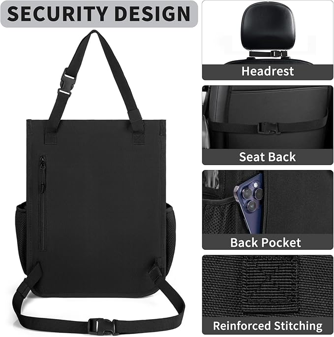 - 【Fit for All Cars, Vans, SUV, Trucks】: Our car backseat organizer is designed with adjustable straps and fixed buckle, tightening the strap make more stable around any headrest. Also conveniently convert to a car back seat organizer as you preferred.