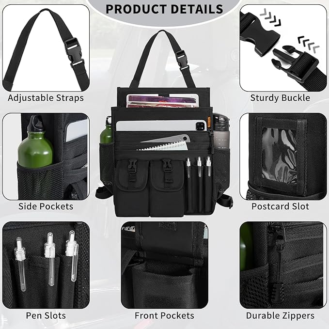 - 【Carry or Hang – Ready for Any Situation】: Use it as a hanging car organizer or grab it by the handle for instant mobility. Our front seat car organizer ideal for law enforcement, patrol, fieldwork, mobile offices, and everyday drivers alike.