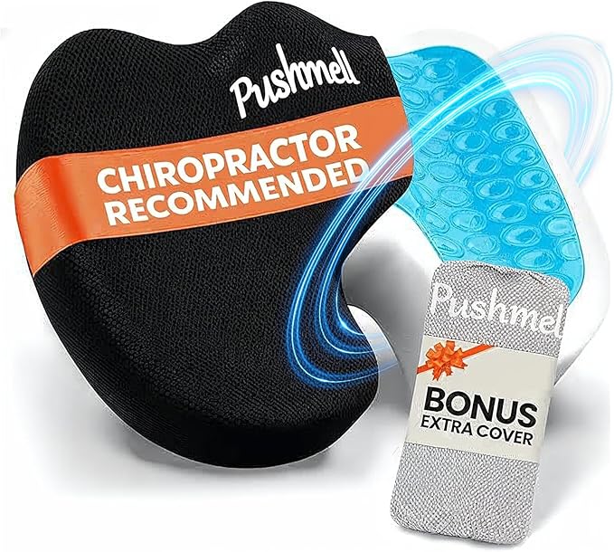 - CAR SEAT CUSHION: This tailbone pain relief cushion doubles as a supportive coccyx cushion for tailbone comfort during daily drives and extended sitting. Designed with high-quality memory foam and gel cushions for pressure relief, it helps reduce lower back strain and improve posture while traveling. Ideal for drivers and long commutes, this premium butt cushion for long sitting adds balanced comfort to your car seat cushions collection, enhancing every ride with ergonomic support. Cooling gel technology and a breathable mesh cover help prevent heat buildup, keeping you cool and comfortable even on long drives.