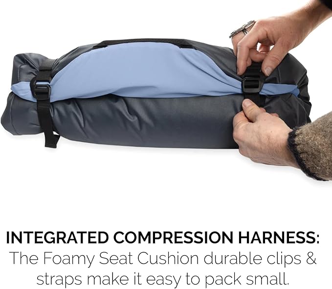 - INTEGRATED COMPRESSION HARNESS: The Foamy Seat Cushion durable clips & straps make it easy to pack small allowing you to take in anywehere you travel. One size that fits most seats for all day comfort.