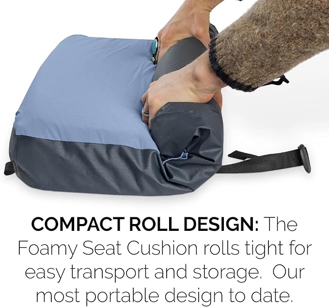 - COMPACT ROLL DESIGN: The Foamy Seat Cushion rolls tight for easy transport and storage. Our most portable design to date. Grab & Go, a durable handle makes transport a breeze. The travel seat cushion for airplane flights will keep you comfortable throughout your entire trip.