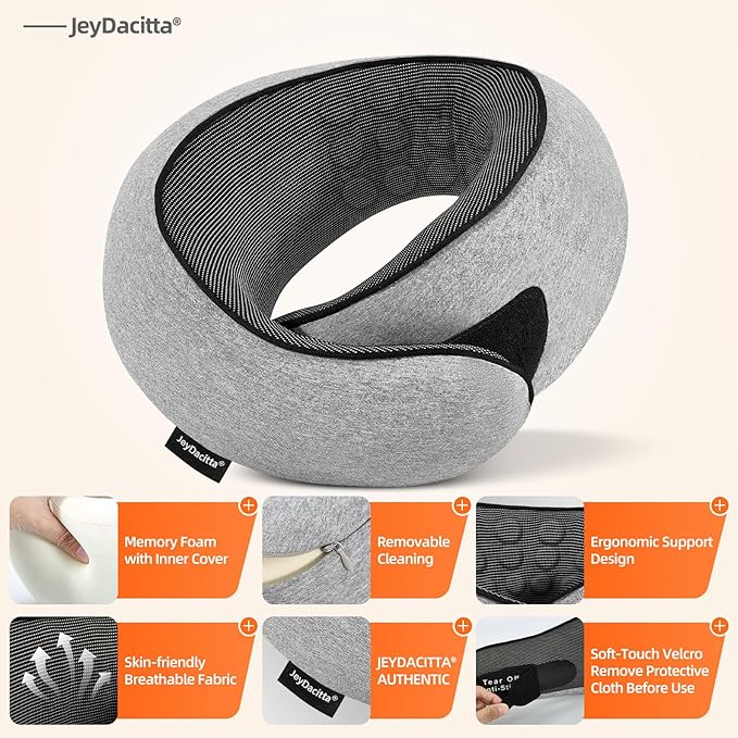 - 【Premium Memory Foam Pillow】: Our travel pillow core is made of premium slow-rebound memory foam, which is soft and elastic to the touch, providing optimal support for the neck. It effectively relieves muscle soreness and fatigue caused by prolonged sitting during travel or office work. The memory foam core is encased in a seamless, breathable protective inner cover, preventing direct contact between the memory foam and the pillowcase, ensuring lasting resilience and hygiene.