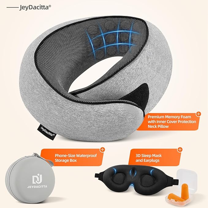 - 【All-round Care for Your Journey】:In addition to the travel pillow and storage box, we provide a 3D eye mask and noise-canceling earplugs. The 3D eye mask is crafted from premium memory foam and lightweight, breathable fabric. The wide 3D stereoscopic eye socket design provides a perfect fit and excellent light-blocking effect. Noise-canceling earplugs let you rest peacefully even on noisy journeys. All-round care for your journey.