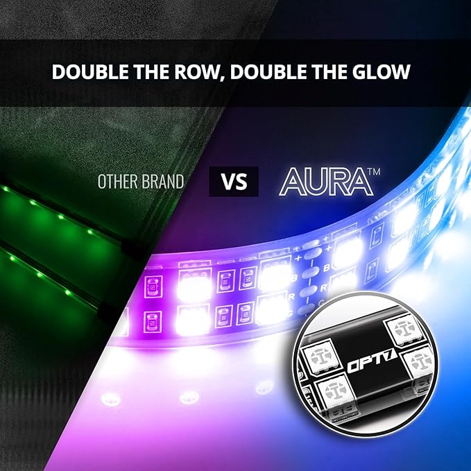 - Double the LEDs, Double the Glow: Stand out at your next car meet with OPT7’s exclusive double-row LED strips. Engineered for ultra-brightness, the premium LED strips deliver everything from chill blue vibes for relaxed drives to captivating party light effects that steal the spotlight.