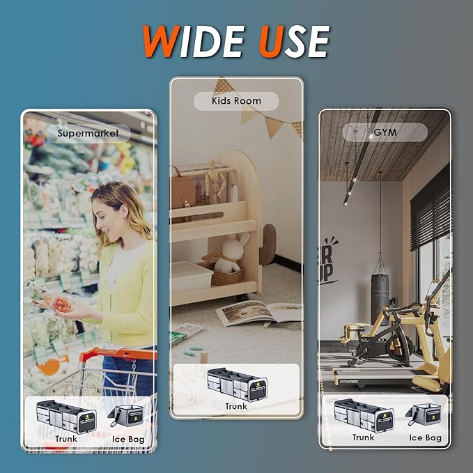 - 【26L Ice Pack with Shoulder Strap】Includes a 26L ice pack that fits perfectly into the 95L organizer’s large compartment (35"x13.8"x11.8"), complete with a wide shoulder strap for easy carrying. Ideal for picnics, road trips, or keeping drinks and snacks chilled on the go—blending car storage with portable cooling convenience.