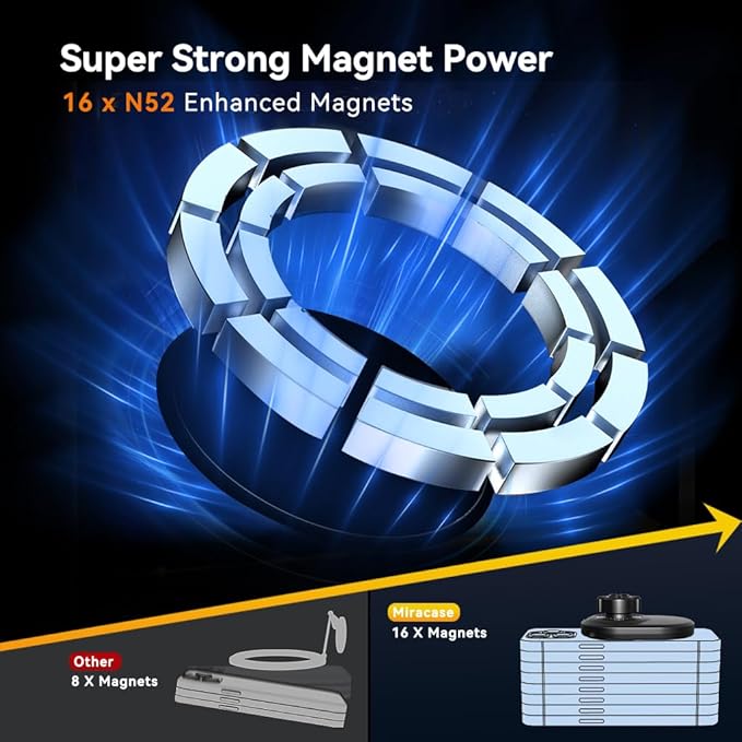 - Powerful Magnetic: Miracase for Magsafe Car Mount Charger built-in 16 powerful magnets, more stable and solid, which can securely place your phone on the wireless car charging and easy to deal with a variety of complex road conditions.