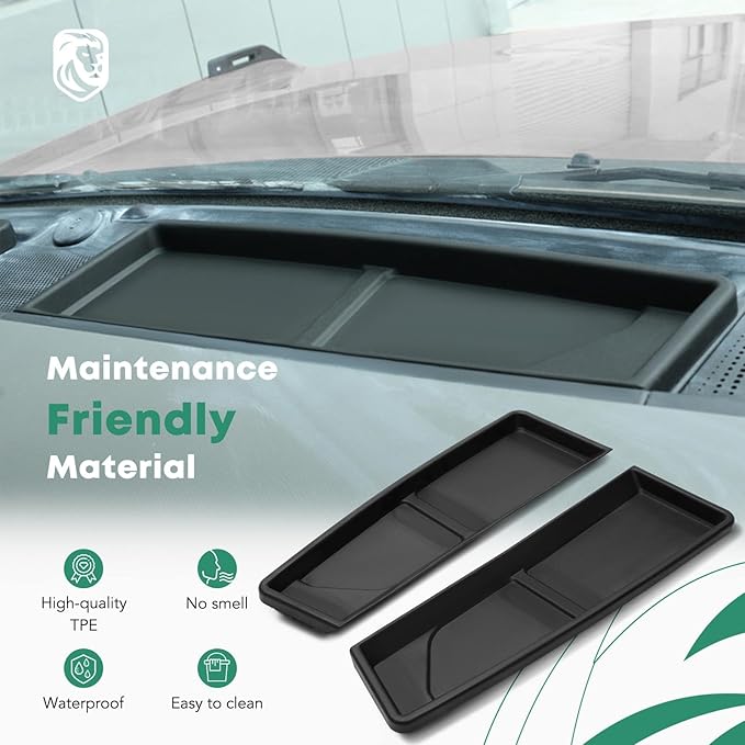 - Quiet and clean: The upgraded TPE material of center console dashboard storage box achieves a balance of softness and firmness. It can protect your items from being scratched in collision, and keep your driving time silent. No issue about Cleaning, the waterproof material just hose it down