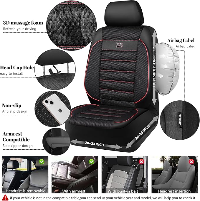 - 【AIRBAG COMPATIABLE】Perfectly fit for most of vehicles with the reserved opening holes.Separate headrest covers allow easy headrest adjustment for optimal comfort and safety. We have the exclusive patent about the blast of airbag for the seat covers in case of emergence.