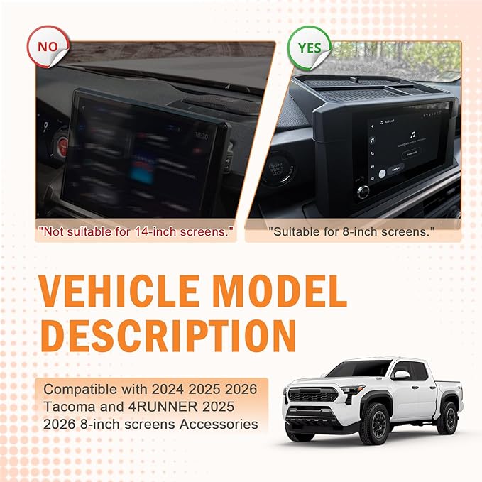 - [ Stress-Free Installation ] Snap-in design requires zero tools or modifications. Fits seamlessly behind the 8" screen within 15 seconds while maintaining factory aesthetics. Exclusive for 8" screen models.