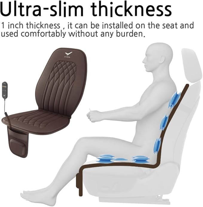 - 【Our products are manufactured with an ultra-slim thickness】It is thinner than any competitor when installed in a vehicle, so it is comfortable, and this mat is designed to be conveniently operated using a remote control. It is designed to fit the ergonomic design. The pressure on the hips, lumbar, and back areas is evenly massaged by the airbag, making the driver's body comfortable during long-distance driving