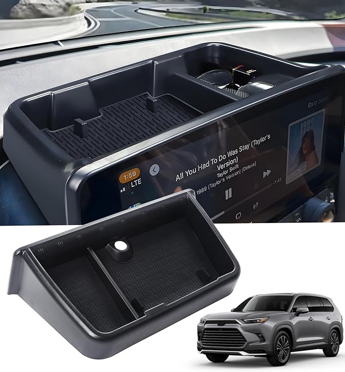 - WELL MADE MATERIAL - Made of solid and durable ABS material. Strong and sturdy construction, not easy to crack or deform. The grand highlander behind screen storage tray come with silent non-slip silicone mat helps prevent items moving around and reduces noise. It complements the interior accessories of 2024-2026 grand highlander 2024 2025, combining stylish appearance and reliable functions.