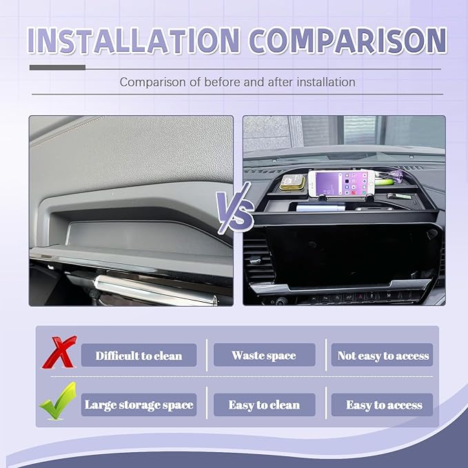 - [ Easy to Install ] : Crafted to suit for your Silverado/Sierra, this tray requires no tools โ simply tear off the double-sided tape on the storage tray and place it on your dashboard. Durable yet lightweight, it' s easy to remove, clean, or install as needed.
